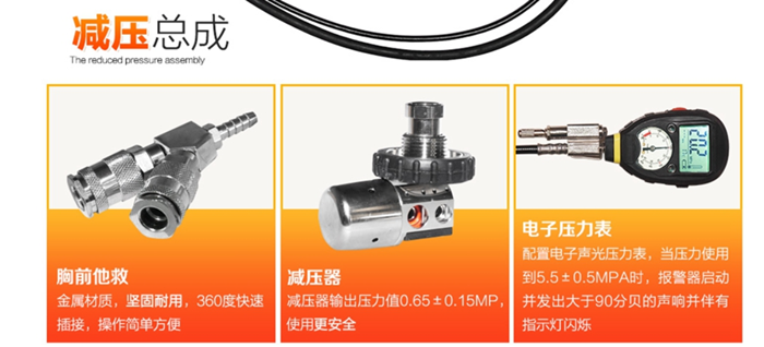 氣瓶工作壓力 ≤30MPa 呼氣阻力(40次/min) ≤1000Pa
